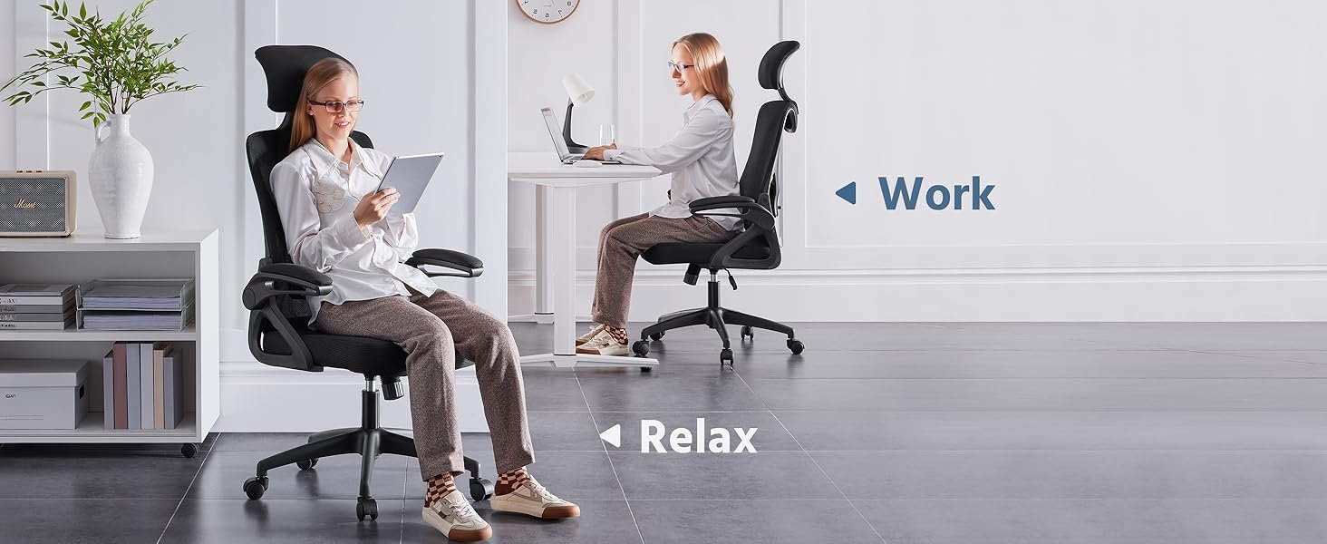 Reclina perfectamente y se bloquea en diferentes posiciones, ideal para descansos cortos durante el trabajo.