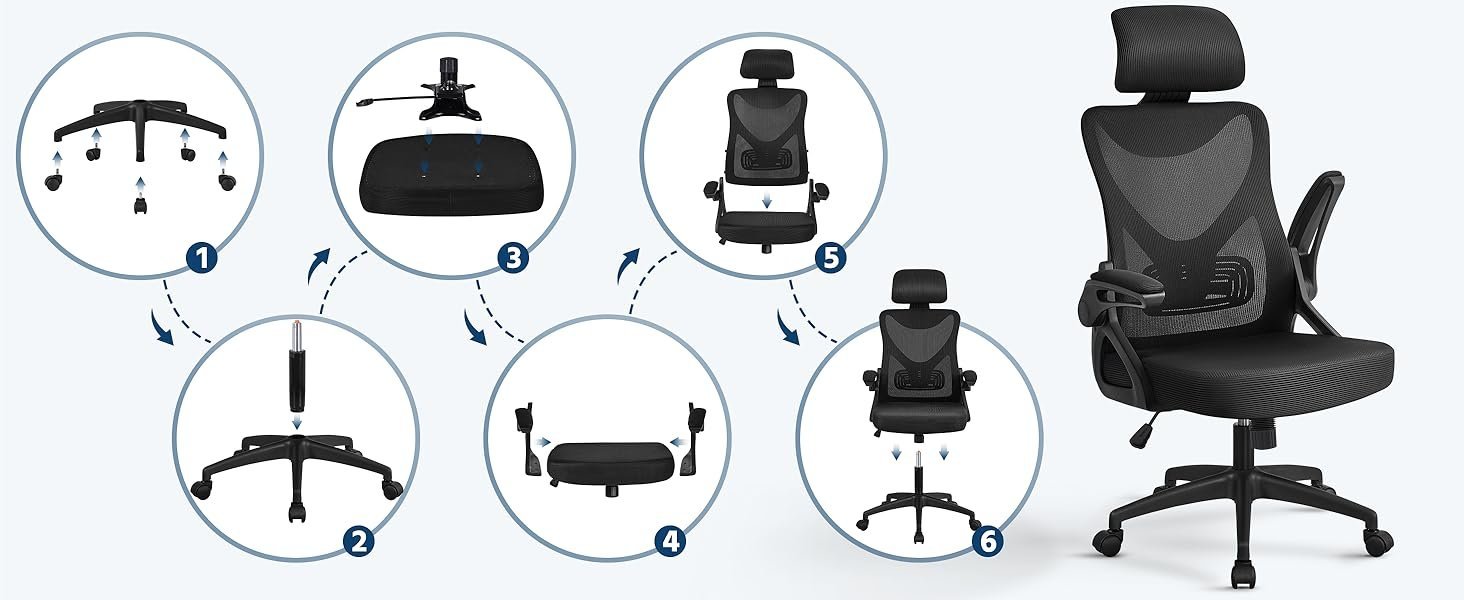 La silla se entrega con herramientas, tornillos e instrucciones claras. El sistema de montaje por encaje reduce el uso de herramientas complejas. Cualquier persona puede montarla en casa en aproximadamente 15 minutos.